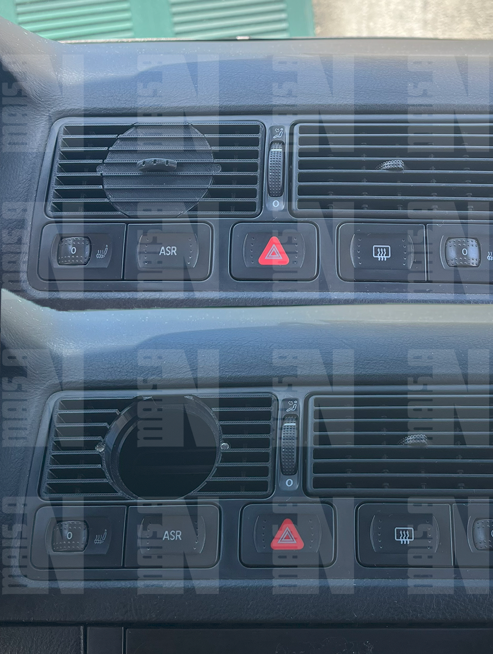 Meio: ⚠️ Aplicação complexa ⚠️ - retirada da ventilação original, desbaste/corte na conduta para que o manómetro possa entrar e colocação do suporte